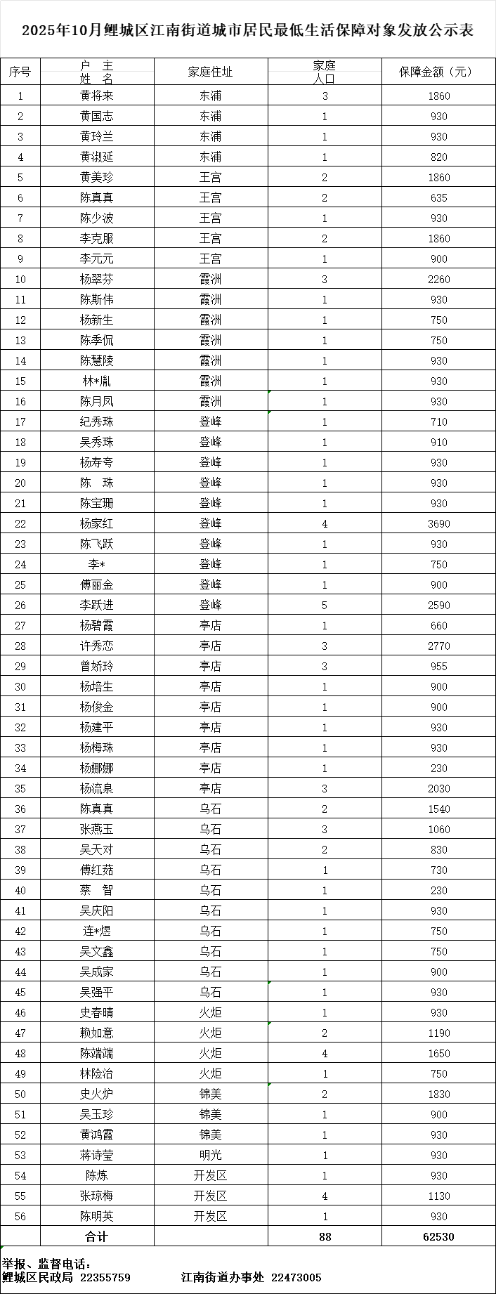 江南街道2025年10月發放低保花名冊