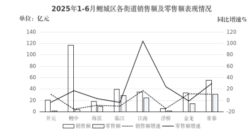 江南新區零售亮眼,新增企業拉動有力。江南新區的常泰街道、江南街道零售額占全區比重分別為27.3%、21.4%,分別同比增長29.3%、103.7%,高出全區限額以上商業零售額增速9.3個、83.7個百分點。兩個街道在招商納統質量上較有成效,新入庫的泉州優品、小米景明依托以舊換新政策,落地后迅速發展,兩家企業合計零售額拉動全區限額以上商業零售額增長20.1個百分點,較一季度提高11.3個百分點,拉動效應明顯。