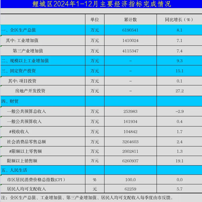 鯉城區2024年1-4季度主要經濟指標完成情況