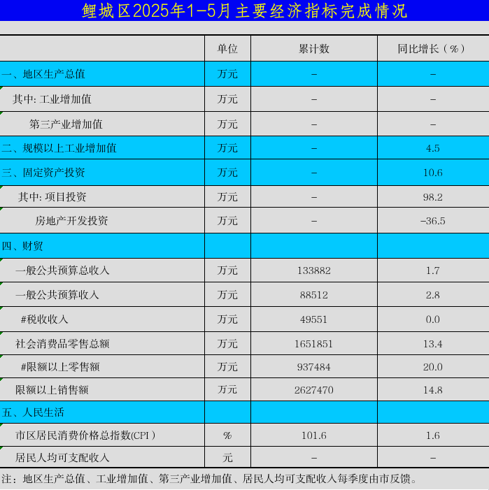 鯉城區2025年1-5月主要經濟指標完成情況